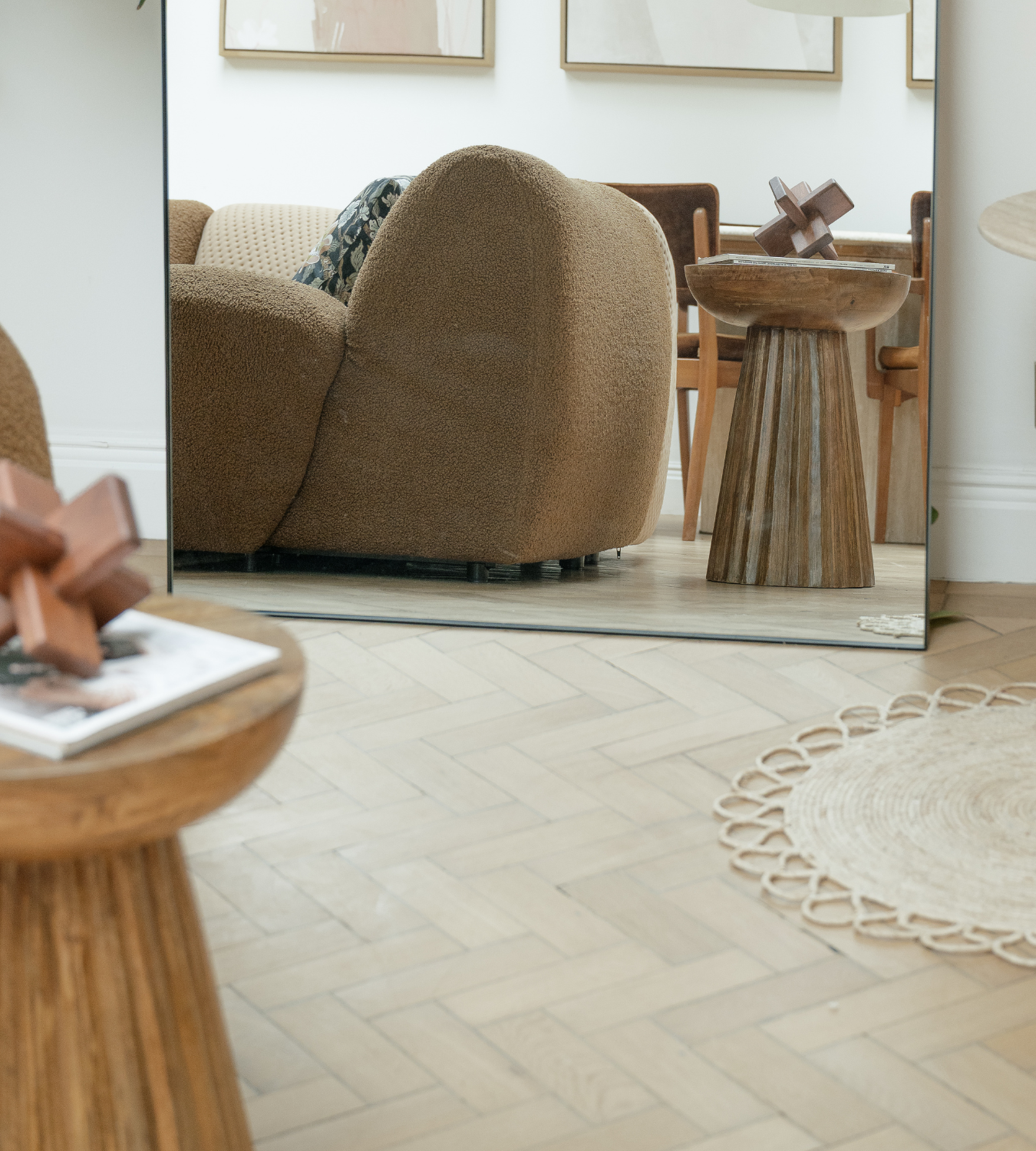 Topped with a smooth, bowl-shaped tabletop, the minimalist design complements any modern interior while providing a functional surface for decor, books, or your favourite cup of coffee. Its natural wood tones and artisanal craftsmanship make it a timeless addition to your home.