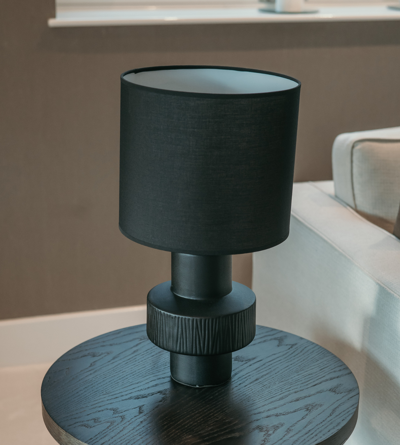 Black Cocoa Ceramic Table Lamp with Linen Shade