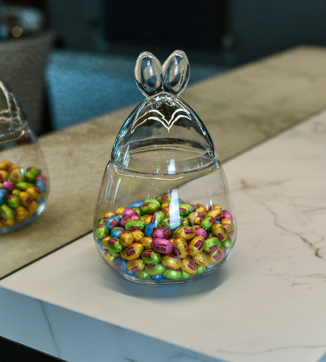 Ideal for filling with mini eggs, sweets or decorative accents, this playful yet elegant jar adds instant charm to spring celebrations.