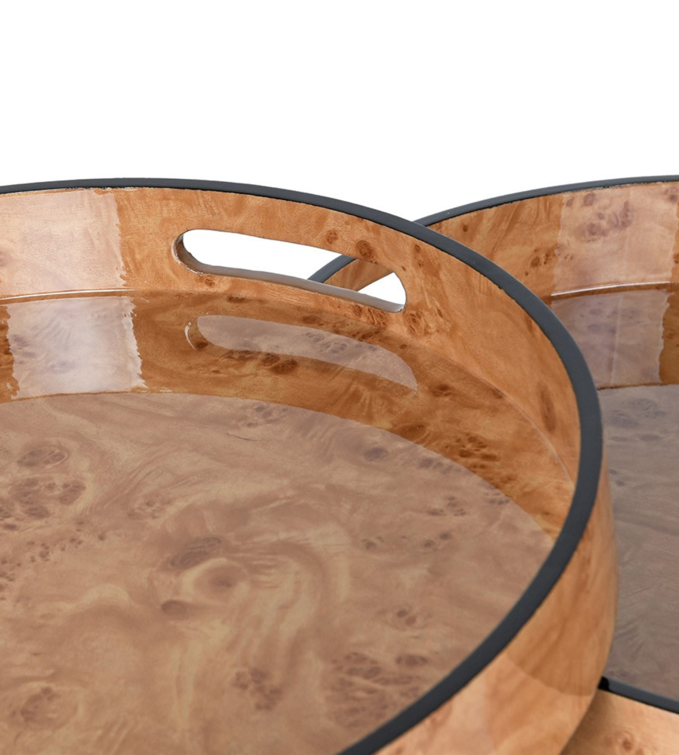 The Set of 2 Round Burl Trays is designed to combine everyday practicality with timeless interior styling.