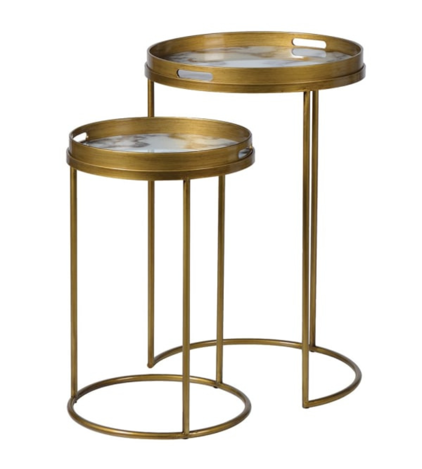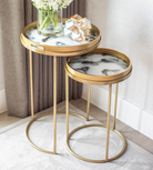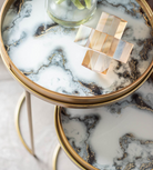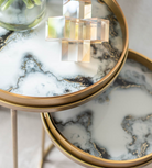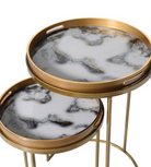 Set of 2 White Marble Effect Tray Nest Tables